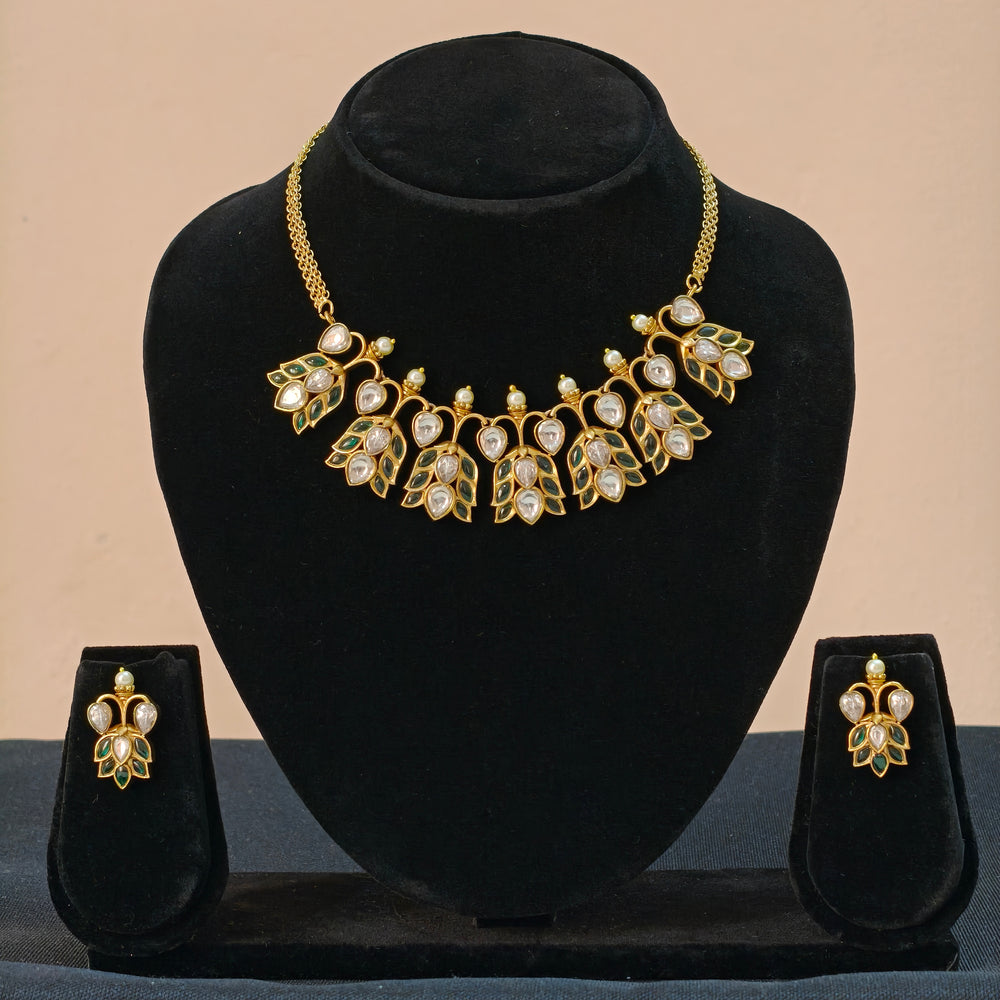 This stunning Daredove necklace and earrings set combines traditional kundan artistry with modern enamel detailing.